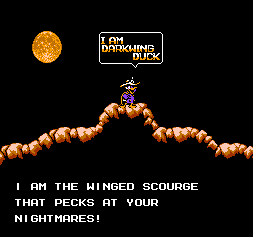 怪鸭历险记 (Darkwing Duck) 是卡普空1992年的一款红白机FC游戏,继承了卡氏一贯动作性操作感俱佳的特点,很多人都玩过。这款游戏曾今被无良的盗版商改版,换了头拿来当洛克人5代卖,有不少玩家被坑。因为它的名字和当时的一部国内引进的英国动画同名,也引起一定的误解。其实它的真正名字叫《狡猾飞天德》,是迪士尼一个系列动画,国内经“小神龙俱乐部”播出过,就是引进比较晚(已经过了FC的当红),所以才弄混淆。