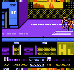 双截龙这个系列很多人小时候都玩过,这个游戏的街机版与家用机的区别很大。相比较来说,街机版采用了艳丽的色彩与写实比例的人物,看起来十分有魄力,而FC版人物看起来比较偏向卡通化,手脚也略显短了一些。但是在游戏性上,所有的双截龙FC版本都比街机版要好玩得多,而且在国内也是FC版比较流行。