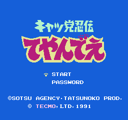 忍者猫/功夫猫党 (Kyatto Ninden Teyandee) 是一款动作FC过关游戏,TECMO出品。游戏非常有趣,可以使用不同的猫来进行游戏,不同的猫有不同的特点,有BOSS战。另外,忍者猫也有漫画和动画版本。功夫猫党(日语:キャッ党忍伝てやんでえ,英文:Samurai Pizza Cats)是1990年龙之子工作室创作的搞笑机器动物动画,而本片日语版主题曲由谷泽伶奈演唱,粤语版主题曲由郑秀文主唱。不过当时是90年代初期,并没有引进在中国大陆,只在中国香港播出。