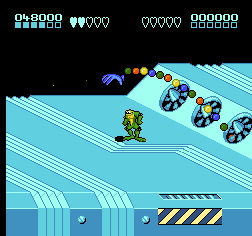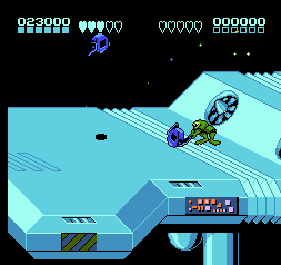忍者蛙与双截龙 (Battletoads & Double Dragon – The Ultimate Team) 是一款当年比较流行的游戏,游戏有一定难度,但是也比较有趣,可以把他当做FC版的恐龙快打和名将这类游戏来玩耍,游戏唯一缺点是画面可能会感觉不怎么样。游戏中需要注意的是你并不能一次攻击两个怪物,换句话说你只能一只一只解决,碰到两个怪重叠最好把他们引开,跑起来冲撞效果会更好。