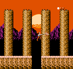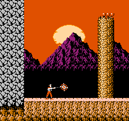 《未来战士》(Rygar) 是FC红白机平台上的一款经典动作冒险类游戏,该游戏的背景发生外太空的一个充满各种危险生物的星球上。未来战士以灰黄色的颜色作为整体画面的基调,随处可见土黄色的石柱和沙堆,营造了一种诡异荒凉的异域奇景。