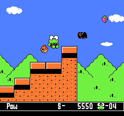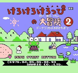 青蛙大冒险2/大眼蛙大冒险2 (Kero Kero Keroppi no Daibouken 2 – Donuts Ike ha Oosawagi!) 小青蛙题材的游戏不一定是青蛙过河哦,这款青蛙大冒险就告诉了我们,青蛙不止是只能过河而已,完美的动作射击游戏,方向感很强,唯一美中不足的就是其角色惯性还是稍微大了一些,而且在控制可以随意按方向键来决定下落地点。