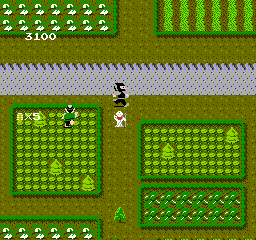 游戏采用俯视视角。玩家需要探索四个不同的地点(关卡),寻找散布在这片土地上的金币(小判)。玩家必须收集所有金币才能进入下一关。在寻找金币的过程中,玩家还得应对那些想要伤害他们的敌方忍者以及这片土地上的其他爪牙。玩家可以通过向任何来袭的敌人投掷镰刀进行自卫。他们还能拾取一些物品,比如作为额外武器的竹矛,此外还有可以提升移动速度的物品,以及能让玩家获得额外一条生命的物品。
