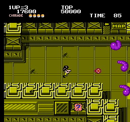 《异形特工队》(Alien Syndrome) 一个埋没的经典,很少能够注意到。其实这是一个移植自“世嘉”商用机(街机)的游戏,无论是画面还算游戏性,在FC上都算的上十分的成功。2007年,世嘉还在PSP平台上推出过此游戏,当然画面与FC相比那是天壤之别。玩家有两位角色可以选择,一男一女。也可以双人一起游戏。你的任务就是冲进被异形控制的地域,解救同胞,顺便也把异形给消灭掉。在游戏中你能加到多种武器,好好干吧。