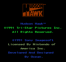 《哈得森之鹰》(Hudson Hawk) 根据美国电影《哈德森之鹰》改编的动作游戏,主角要盗取莱昂纳多·达芬奇的艺术作品。游戏剧情忠实再现了电影中的情节。利用手中小球的攻击放倒所有敌人,使用跳床和吊绳等杂技冲向终点。