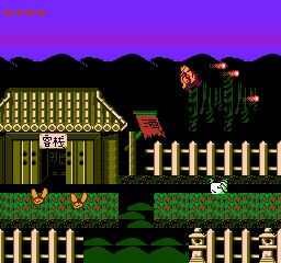 《镜花缘》(Jing Hua Yuan) 是外星科技的古装的魂斗罗,说他是古装版的原因就是因为这玩意没有多少古风场景,六个地图里只有一两个感觉比较像是古风的。攻击武器是火焰弹,一级是小火焰、二级是小火球、三级是大火球,不知道是设计问题还是啥下落时不准你发子弹,不过还是可以踩怪的。整个游戏总共六个关卡,上方三个、中间一个、下方两个。