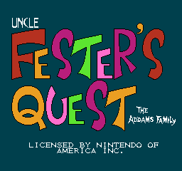 亚当斯一家:法斯特叔叔的探索/福斯特的冒险 (The Addams Family – Uncle Fester’s Quest) 是根据电影“亚当斯一家”而改编的FC游戏。故事讲述了阿达一族住在一栋维多利亚的废墟,生活像贵族般高贵体面,这一家人不是什么妖魔鬼怪,他们只是多一些快乐,地窖里有座金库够他们享用一生,但贪念的律师却设计毒药想谋夺这巨大的财富。