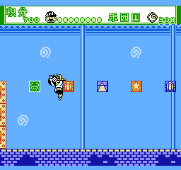 《平成天才:笨蛋波恩》(Heisei Tensai Bakabon) 赤冢不二夫的搞笑漫画《天才笨蛋》改编的游戏。操作天才笨蛋波恩的老爸,利用攀墙、挥伞之类的动作来闯关。游戏一共4关,动作设计轻松有趣,原作的氛围与搞笑桥段表现得淋漓尽致。