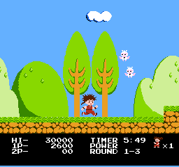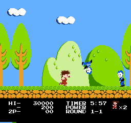 《快杰洋枪丸》(Kid Niki - Radical Ninja) 是一款横向卷轴的动作游戏,玩家扮演忍者「洋枪丸」为了拯救久留美公主,在广大的原野、高山和洞窟等各种关卡,挑战一路拦阻去路的忍者军团。轻快的节拍、逗笑的角色以及主角专有的武器「十字回转剑」挥动的英姿更是令人玩家留下深刻的印象。