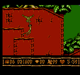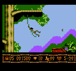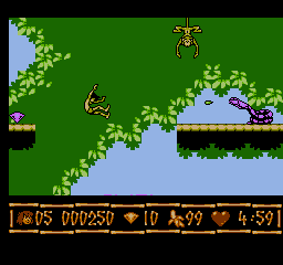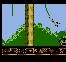 奇幻森林/小泰山!丛林日记/森林王子 (Disney’s The Jungle Book) 与当下很多游戏更多只是讲求流程式的剧情或开放性相比,FC时代的游戏虽然没有华丽的画面,但在游戏性上却更胜一筹,甚至出现了很多“变态难”的作品。而这款游戏绝对堪称FC时代史上最难游戏之一。《森林王子》系列作品可以说有着悠长的历史了,它是华特迪士尼先生生前亲自监制的一部动画长篇,根据英国作家在鲁德亚德·吉卜林所写的小说《毛格利》改编而成。堪称经典之作。这款游戏英文名《The Jungle Book》,就是基于1967年迪士尼动画电影《The Jungle Book》改编的游戏,该电影由美国迪士尼公司出品,这款FC游戏《森林王子》也是经过了美国迪士尼公司的授权。