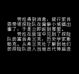 古墓丽影 (Gu Mu Li Ying) 劳拉得到消息,银行家肖恩带领探险队在偏僻小城镇出事了,于是立即赶到那里。劳拉在旅馆中见到了探险队的富翁弗兰克,历史学家斯帕克。从弗兰克处了解到他们的探险队进入当地古代神庙进行考察,意外的发现一份古老的地图,暂由肖恩保管。但前天他突然离奇死亡,当地人都说是受到了诅咒。古老地图也随之不见了……