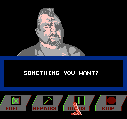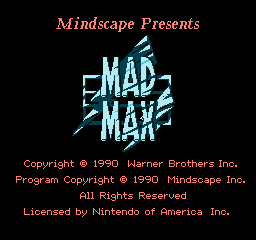 疯狂的麦克斯 (Mad Max) 是一款由加拿大工作室Gray Matter开发,Mindscape于1990年为NES发行的后世界末日动作游戏。该游戏基于1981年的澳大利亚电影Mad Max 2制作。目标是与生存主义者作战并收集宝贵的食物、水、汽油和金钱,以便在后世界末日的环境中生存,驱车进入更远的沙漠荒地。在游戏的最后玩家将与最终Boss进行一对一的弩战,弩和弹药都是之前的矿场中收集的,如果没有获得足够的弹药,将无法击败Boss。