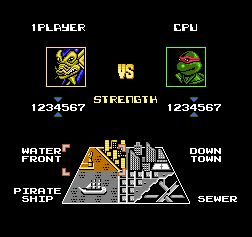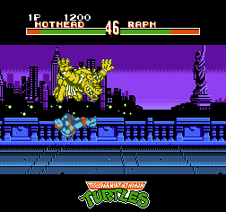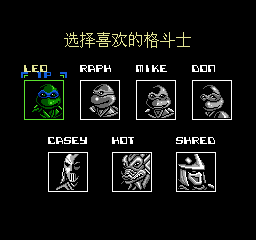忍者神龟格斗/激龟快打 (Teenage Mutant Ninja Turtles – Tournament Fighters) 80后的亲们一定忘不了小时候这款FC经典格斗游戏。现在的我们,闲暇之时,用它来回忆小时候那些围绕着他们的那些趣事,也挺有意思的。《忍者神龟格斗/激龟快打》是FC上的一款动作小游戏,也是忍者神龟系列在FC上的最后一部作品,是格斗类型的游戏,有板有眼,动作硬派相当高,在FC无人能比的格斗游戏,在原先打斗的基础上,加入了不少的语音,除了原先的神龟四个兄弟之外,还有另外三名角色可以选择格斗,分别是霍华德、卡西以及斯雷德,因为FC上的容量限制,游戏的角色以及场景稍微有点少。