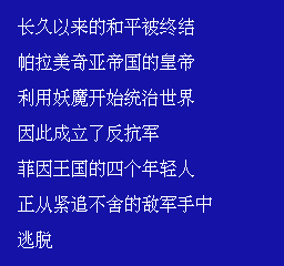 最终幻想2 (Final Fantasy 2) 由日本SQUARE公司于1988年推出的FC平台角色扮演游戏,是《最终幻想》系列作品的第二作。游戏讲述了玩家扮演的光之战士,为了拯救世界展开冒险的故事。在皇帝带领下,帝国军四处侵略,他们破坏了主角们的家乡,并且主角之一的雷恩哈特被皇帝抓走。之后主角们在与帝国军暗地里对抗的原菲茵城的起义军一起作战,先后取得兵器矿石米斯里鲁,炸毁大战舰,取得究极魔法,期间牺牲了数个战友,最后4人奋力杀进皇帝的大混乱城,消灭了引起战乱的罪魁祸首。
