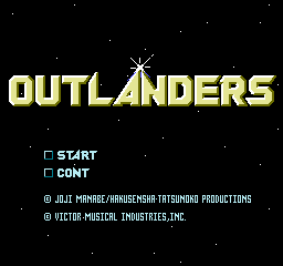 《远离星球》(Outlanders) 这部是改编自真锅譲治的早期作品,不过很可惜并没有改编成中文版。而真锅譲治最着名之作即是“银河战国群雄传”。而这部游戏的故事是说:主角为日本摄影少年哲也。而故事开头发生地球受银河帝国攻击,而哲也却在此认识了一位女孩,最后才知其为银河帝国的公主,而主角为了地球免受银河帝国侵略而与公主结緍,而被带到银河帝国去。但银河帝国君主却非常生气,而将主角关了起来。最后主角从监牢中逃了出来,主角必须想办法去接近君王,必须说得让其不要侵略地球以及可以与公主结緍,而游戏即是从主角由监牢中逃出来展开游戏。而游戏最先是发行在日本的电脑PC-88中,然后再移植到红白机上,所以画面以及内容有作变动。此游戏为动作RPG,必须与敌人对撞后才会进入战斗画面。而对敌时,A键即攻击B键会出现文字对话窗来。而打倒敌人会掉落各种金钱或者食物,必须要压下文字对话窗中的拾取才可以收下,有点麻烦。而打倒敌人可以赚钱去买装备以及武器。