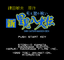 《新里见八犬传:光与暗的战争》(Shin Satomi Hakken-Den - Hikari to Yami no Tatakai) 镰田敏夫小说改编的游戏。地图探索式角色扮演游戏,根据选择的角色不同,游戏前面的故事有些区别。等8位角色聚集在一起,就可以去寻找8种道具,并打倒最终BOSS。战斗人数是最多8人出场。