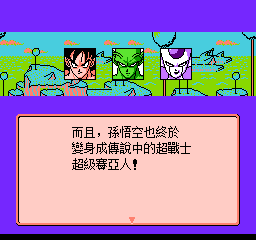 龙珠Z3:烈战人造人 (Dragon Ball Z III – Ressen Jinzou Ningen) 为复活死去的短笛,Z战士来到那美克星!然而,弗利萨也为了龙珠而来到这里!经过一番苦斗,打倒了弗利萨的手下,终于集齐了龙珠!期间,曾经作为敌人的贝吉塔也加入成为同伴!成功复活了短笛!但是由于无法获得永生,弗利萨十分不甘心!决定迁怒于地球人,以泄他心头之恨!不过Z战士的实力也提升了不少!而且,孙悟空也终于变身成传说中的超战士超级赛亚人!