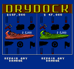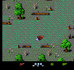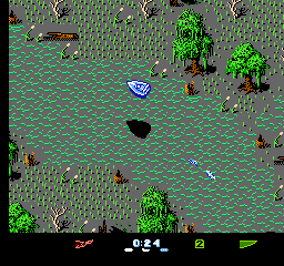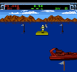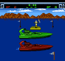 《赛艇决战》提供了三种难度级别:简单、普通和专家。在较低难度级别完成一场比赛后,玩家即可晋级到下一个更高的难度级别。在每个难度级别中,玩家的水翼船都可能因与动物、对手的水翼船以及各种固定物体相撞而受损。抢跑会被处以 2000 美元的罚款。在比赛的大部分时间里,玩家从鸟瞰视角操控水翼船,屏幕会向多个方向滚动;但在比赛的一个阶段,画面视角会切换为第三人称追踪模式。在单人游戏中,玩家首先与 Seasick Sidney(简单模式)、Aquarius Rex(普通模式)或 Surfer Bob(专家模式)竞争。玩家随后将分别与恶毒维姬、怪异威利、破坏者迈克、维罗妮卡·阿拉巴斯特和灾难唐(现任世界冠军)展开对决。要获胜,玩家必须在三条独特的赛道上一对一击败每个对手。《赛艇决战》共有 24 条独特的赛道。