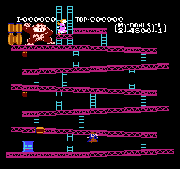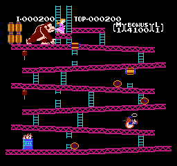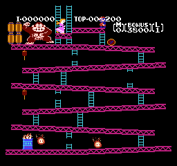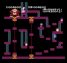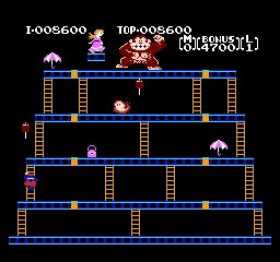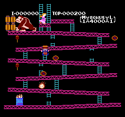 《大金刚1》(Donkey Kong Classics) 大金刚系列里的马里奥,虽然一身大叔行头没变,但那时不叫做“Mario”(马里奥),而是“Jumpman”(跳人)。上面被大金刚抓住需要拯救的也不是桃子公主,而是一个叫做“保琳”的红发女孩,“跳人”的女朋友……扮演反派的大金刚,在这一代比较暴躁,会不停向下扔木桶砸人,有一定难度。
