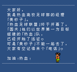 热血足球2 (Kunio-kun no Nekketsu Soccer League) 一款经典的红白机游戏,12个日本六人足球精英组成日本热血队,前往挑战世界各地的冠军球队,《热血足球》系列中最经典的一款游戏。在该游戏中,完全不用顾忌任何足球规则,你可以使用任何手段来夺取足球比如把人打倒或者踢飞,甚至可以把守门员揍得和猪头一样,或者把球网都踢穿。里面人物还会出现非常搞笑和夸张的表情和动作让人忍俊不禁。在童年这款游戏带给了我们非常多的快乐时光。曾经玩过这个游戏的玩家想起这个游戏都想也都会不禁会心一笑。许多玩家在多年前玩此作品时可能由于语言障碍而无法理解游戏的全部含义,而在这一汉化版本中玩家将完完整整的体验到该游戏的魅力,对于热血系列的爱好者来说绝对是不得错过的佳作。
