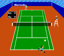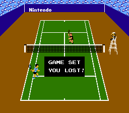 网球 (Tennis) 红白机上首款网球游戏。游戏使用了倾斜的俯视视角,这种视角更好地还原了网球对垒时的真实感及精彩程度。操作简单却能实现多种网球动作,是一款完成度极高的作品。难度等级共有5段可调,双人游戏模式只能合作双打。