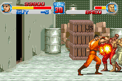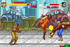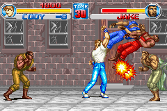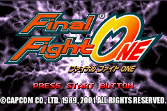 快打旋风One (Final Fight One) 是CAPCOM在街机平台上经典的轻版动作游戏《快打旋风》在GBA平台推出的强化版《快打旋风One》,游戏在画面表现上与SFC版的画面相差无几,在GBA动作游戏中还是相当优秀的。游戏中玩家从几名壮汉中挑选一名进行战斗,打倒邪恶势力,救出市长的女儿。另外,GBA版还追加了少年街霸(Street Fighter Zero)中的出场的CODY和GUY这两名新角色,让游戏的耐玩性更高。