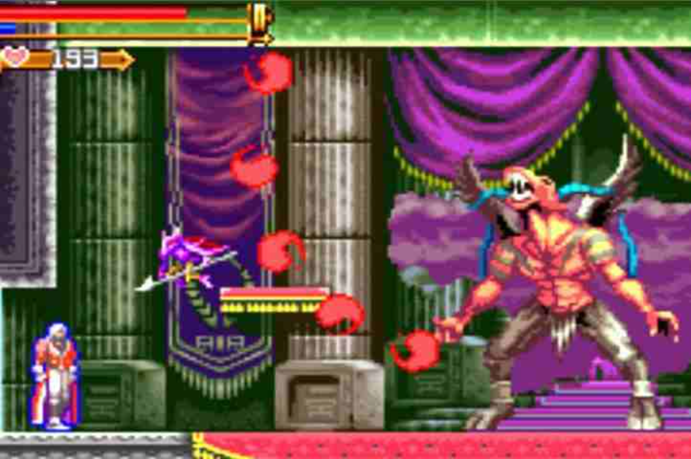 恶魔城:白夜协奏曲 GBA恶魔城三作中的第二作,画面效果一般,音乐很重金属,气氛很诡异,但不是很受玩家欢迎。游戏中依旧以正反双主角形式进行,正面角色为主角祖斯特,反面角色为小时的玩伴马克西姆。游戏已经与恶魔城月下发布了音乐集《Castlevania Circle of the Moon Castlevania Concerto of Midnight Sun Original Soundtrack》,音乐集中的主题钢琴曲《Chapel of Dissonance (Arrange Version)》不容错过。