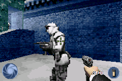 占士邦007:夜火 (007 – NightFire) EA的电影转游戏是出了名的,虽然按GBA的机能来说是不很适合做这种第一人称的射击游戏,但本做的3D效果还是可看的过去的,并且拥有多种武器,手枪,机枪,狙击无做不有,并且还有重型武器,火箭筒呵呵,并且可以与CS一样进行跳跃,喜欢3D游戏玩家可以试试。