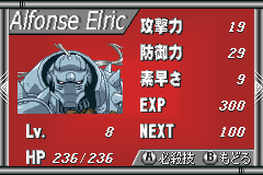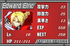 钢之炼金术士:回忆之奏鸣曲 (Hagane no Renkinjutsushi – Omoide no Soumeikyoku) 本作是根据日本知名动漫作品《钢之炼金术师》改编而来的一款GBA角色扮演游戏,游戏延续了动漫中的炼金题材,想要使用炼金术就必须付出相应的代价。游戏主要以卡片炼成系统为中心,玩家在游戏中获得不同的素材卡片,玩家将这些特定的卡片进行组合炼金就能产生出各种物品,包括武器、装备、道具等,这些对于战斗也非常重要,玩家也能够充分体验到炼金的乐趣。