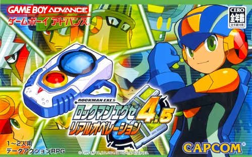 洛克人:网络战斗EXE4.5真实演习 (Rockman EXE 4.5 – Real Operation) 是一款角色扮演类游戏,Capcom代表作之一。该游戏融合了之前在GBA上发布的《洛克人EXE4蓝月》及《洛克人EXE4红日》两款作品,并在前作的基础上增加了不少新要素。