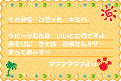 《水果村的动物们》(Fruit Mura no Doubutsu Tachi) 水果王国以前曾经存在一个空中游乐园,可惜现在已经变成了废墟。玩家要扮演的是“水果村”村长的孙女露洁,修复被人们忘记的天空游乐圆,让其重新作为主题公园而再生。