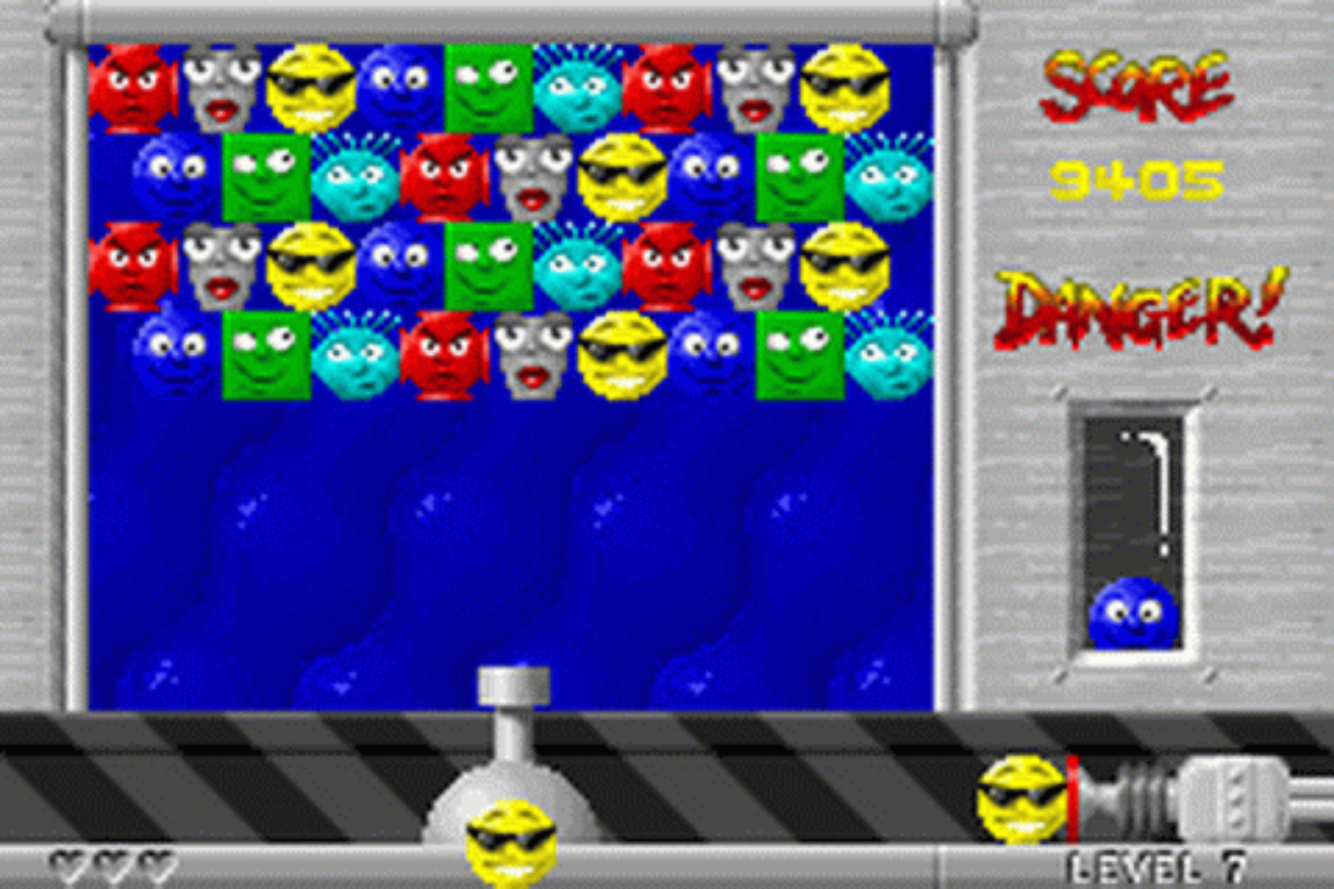 怪投射波1 (Snood) 游戏方法和泡泡龙一样,属于下打上型的方块游戏,需要把3个或以上的色块连在一起即可取消。游戏包括3种模式。其中的单人游戏模式有以不同的关数划分而成的PUZZLE MODE模式;以计算机角色为对手进行对战的VS CPU MODE模式;不会完结的游戏模式,PUZZLE会不断出现的ENDLESS MODE模式。“DS STYLE”的系统,在这系统下,玩家可以储起在游戏中所得到的各种不同功能的道具,并可以自由选择在甚么时候使用那些道具。