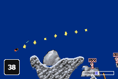 这款游戏是GBA上的百战天虫,虽然玩法上遵循了传统模式,但画面上并没有太多的可圈可点之处,太多朴素的效果看起来没有一点吸引力,好在靠着其经典内容,这部游戏也注定不平凡。对于百战天虫游戏的玩法大家早就熟悉,已没有太多可介绍的地方,喜欢的玩家还是亲自体验下GBA版的百战天虫有何不同吧。