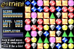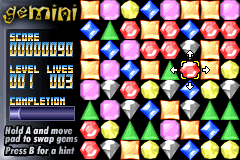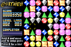 宝石消消乐 (Gemini) 是一款民间玩家自制的GBA休闲小游戏。把三个颜色相同的宝石连成一条直线,即可消除。达到指定的目标就能通关。对于喜爱GBA游戏的伙伴们试玩倒是个不错的选择,很不错的怀旧游戏,值得推荐,希望大家好好享受游戏带来的快乐。