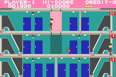 电梯大战 (Elevator Action – Old & New) 原版(“旧版”)的重制版,以及为 GBA 专门制作的改编版(“新版”)。《电梯大战》将你设定为一名超级间谍,任务是从敌方大楼中收集机密文件并全身而退。游戏采用非滚动的侧视图,你需要指挥你的特工前往每一间办公室收集文件,同时避开敌方守卫及其武器。你可以通过操控大楼里众多的电梯在各楼层间穿梭,还可以向每一层的敌人或灯具开枪,让自己在敌人跌跌撞撞于黑暗中时占据优势。