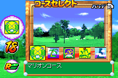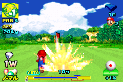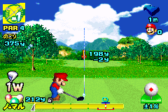 《马里奥高尔夫巡回赛》(Mario Golf - GBA Tour) 马里奥大叔代表着“销量”,本作除了有3D的画风、有趣的赛事,还有就是众多任天堂明星的出场。游戏除了有3D的画风、有趣的赛事,还有就是众多任天堂明星的出场。游戏中的主题还是以高尔夫这项野外运动为主,不过还加入了RPG以及养成要素在内,使游戏的可玩性大大加强,还有能马上开始游戏的快速游戏、多人模式、STATES、OPTION、高尔夫字典等丰富的游戏内容而在高尔夫最重要的比赛场地部分,也以3D即时演算方式来表现场地的立体感。