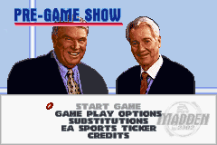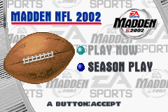 《马顿橄榄球2002》(Madden NFL 2002) 是美国游戏制造商EA公司制作的一款体育类游戏,玩家将从32支美国职业橄榄球队中选择自己的队伍进行比赛,美国足球带给你的自然是疯狂与刺激。对于喜爱GBA游戏的伙伴们试玩倒是个不错的选择,很不错的怀旧游戏,值得推荐,希望大家好好享受游戏带来的快乐。
