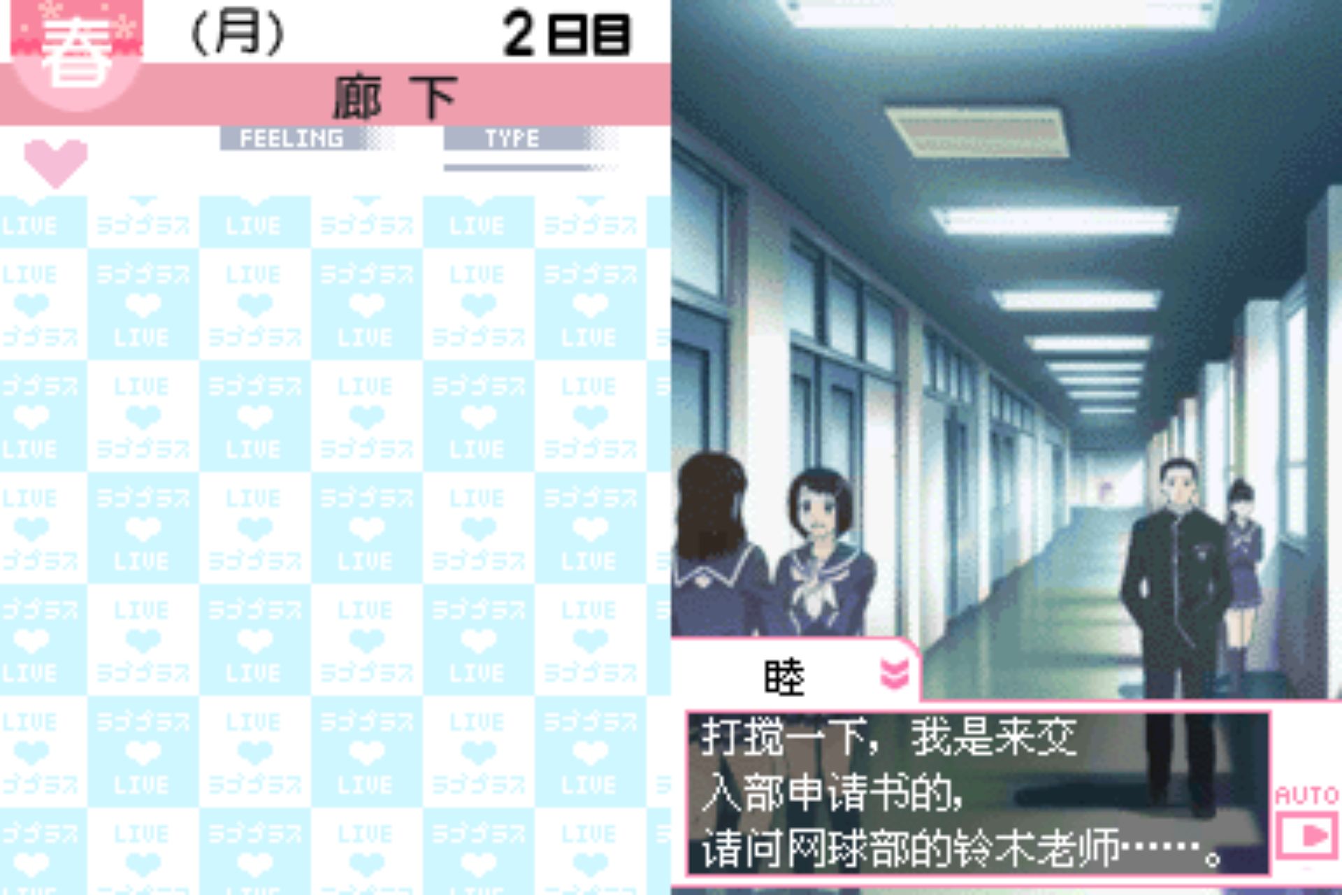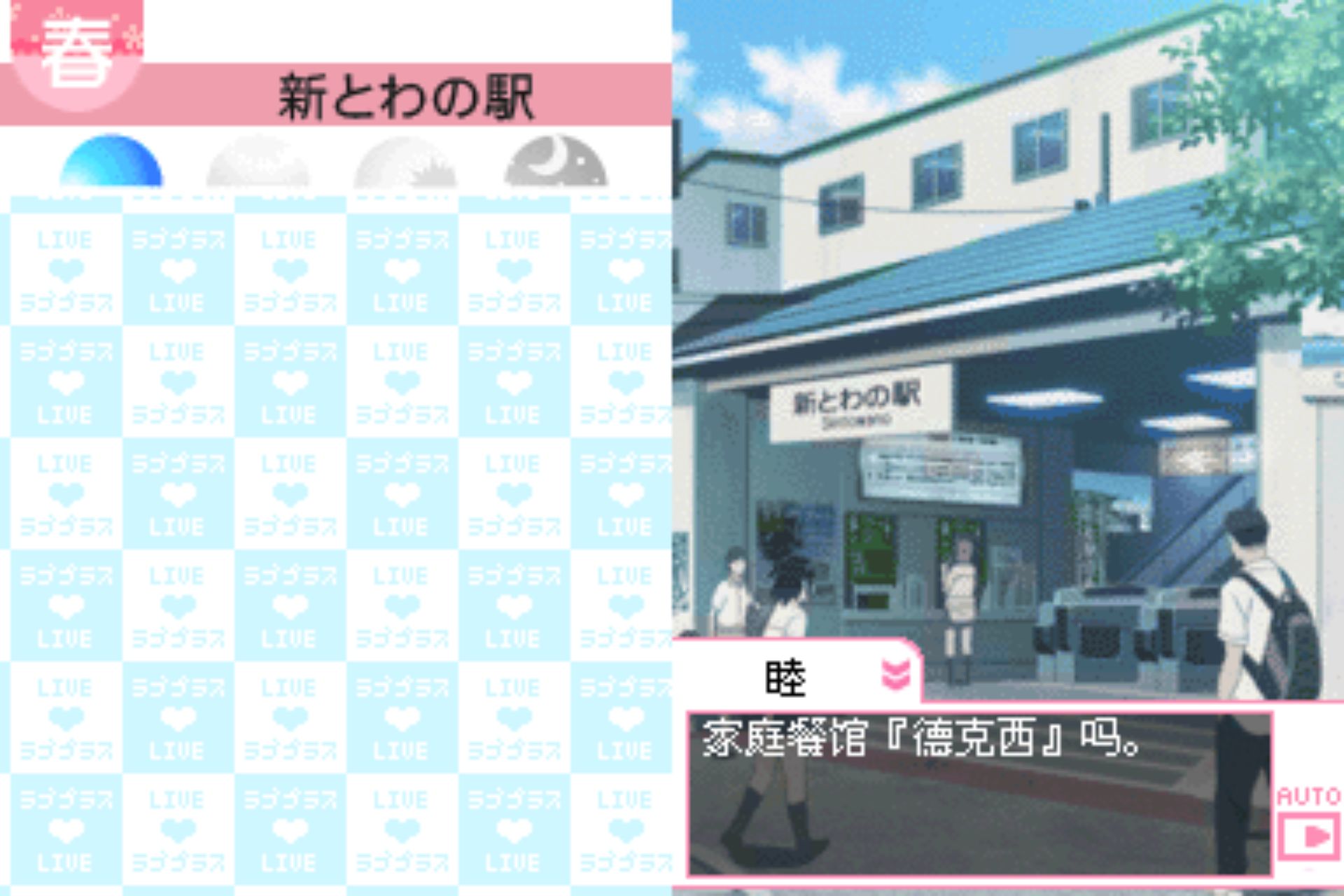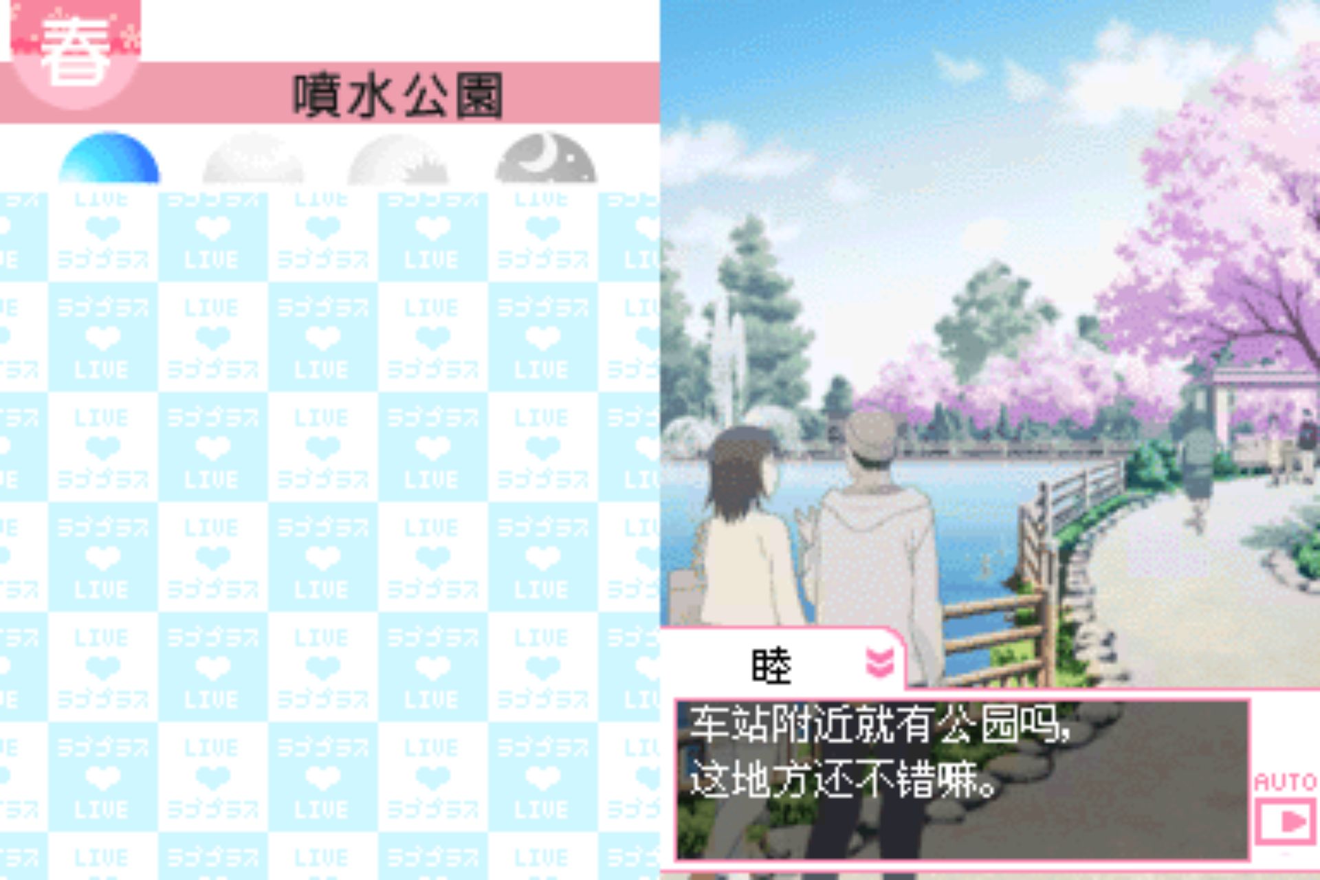 爱相随/纯爱PLUS/深爱PLUS (Love Plus) 是KONAMI在NDS平台上推出的具有真实时间模拟的恋爱冒险游戏,根据玩家设置的NDS时间,玩家就会在任何的情况下打开主机随着时间的变化而在不同的场景下和心爱的女孩子一起生活、交流。游戏舞台是那背山面海的美丽新兴都市“悠久之市(とわの市)”(汉化版为永久市)。而你扮演的是刚转进该私立十羽野高校的男学生,在这里你与3名女子命运般相遇。而在校园生活与打工期间,你们堆积了很多美好回忆,这时候女生把你当成最重要的“朋友”,然而当想法某天出现转变时,另一种感情在这时候……永不完结的二人物语正准备开始。
