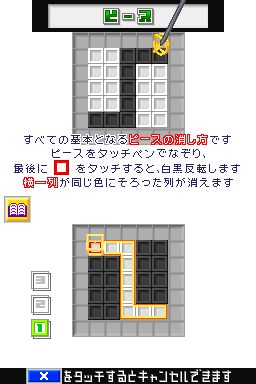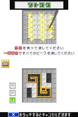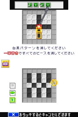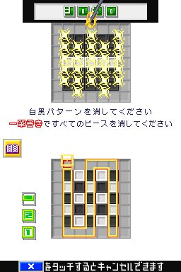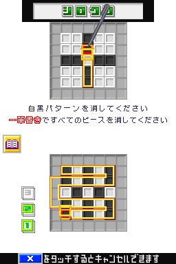 直感一笔 (Polarium) 自神游iQueDS的首发便一同上市,作为首款中文化的DS游戏对于中国玩家来说可谓百感交加,《直感一笔》方式非常简单,下屏幕有一定组合的黑色与白色的色块,玩家需要在屏幕下划一条曲线(不可交叉),曲线经过的地方黑色与白色的色块会互换,一行中如果色块颜色相同就会消去。看似简单的规则,对于普通玩家来说是非常容易上手的,但是其实同“仓库番”有着同样的难度,并且除了考验玩家的眼疾手快,同时也要考验玩家的心理素质。