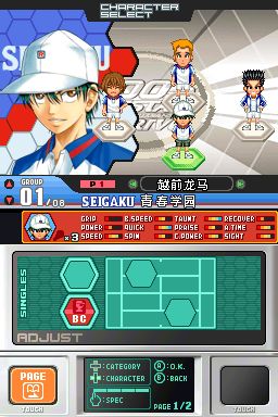 游戏使用上萤幕来显示比赛画面,下萤幕则用作辅助画面以及触控特殊操作,如点击下萤幕的教练来激励选手,或点击下萤幕上的符号,来使出无我的境界必杀招式。游戏中也提供了新的混合团体战模式,可让玩家自由搭配不同学校的选手进行团体战,以及可累积用以购买游戏中新角色与新要素的点数系统。游戏也支援透过NDS无线网路进行最多4人的对战模式,充分发挥NDS独特的硬体功能,是款能让喜好原作的玩家充分乐在其中的游戏。
