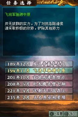 游戏画面在 NDS 平台上表现出色,细腻地展现出三国时期的城市风貌与宏大战场。丰富的历史剧情与多样的事件触发,让玩家仿佛置身于波澜壮阔的三国乱世。无论是三国题材爱好者还是策略游戏玩家,都能在《三国志DS2》中感受到运筹帷幄、逐鹿中原的乐趣。