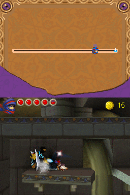 波斯王子:堕落之王 (Princeof Persia – The Fallen King) 终于登陆DS平台!该系列作为元老级的动作游戏,向来都是以流畅的动作和酣畅淋漓的打斗场面著称。作为一款横版卷轴动作游戏,本作中3D化的场景一定会使你再次感受到这一系列的独特魅力。该作讲述的是波斯王国受到邪恶力量的侵蚀,波斯王子逃到一个被遗弃的国度当作庇护所。可是黑暗力量已渐渐开始侵蚀天空和大地。王子为了拯救被邪恶侵扰的国度,从而展开了新的冒险之旅。游戏全程采用触笔操作,通过触笔可以完成王子的所有动作以应付游戏中各式各样的机关,操作手感爽快,动作丰富,并且画面相当精美,音乐也富有阿拉伯东方风格特色,是近期DS上ACT方面不可多得的佳作。