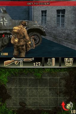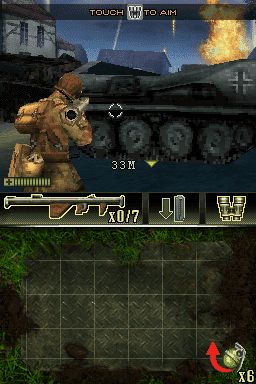 战火兄弟连 (Brothers In Arms DS) 第三人称射击游戏。游戏拥有三大战役,16个关卡。讲述二战中从北美开始到诺曼底的战争实况。战斗过程以3D作为表现形式,触摸屏可用来更换武器、锁定目标以及投掷手榴弹,交通工具诸如吉普车和坦克车等都可以驾驶。与NDS上的COD系列类似,特点是第三人称的游戏视角,场景也较COD表现更出色。因为主要操作都在下屏,建议实机体验。