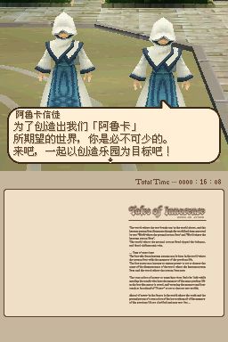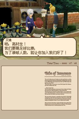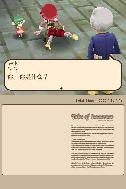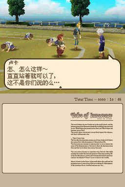 圣洁传说 (Tales of Innocence) 继《风雨传说》之后的第二款“《传说》系列”NDS作品,本作由GBA的《换装迷宫2》开发团队Alpha System公司开发,是在PSP版《世界传说:光明神话》投入开发时就已经同步进行制作的作品,本作的动画由著名的Production IG制作,人设为猪股睦实,主题歌和片尾曲是由KOKIA演唱的《Follow the Nightingale》和《say goodbye & good day》,本作采用了全3D的游戏画面,战斗系统是以《深渊传说》所采用的FR-LMBS系统为基础,并融合了PS2《宿命传说》中的AR-LMBS系统,构成了全新的“DS-LMBS(Dimension Stride-LMBS)”系统。