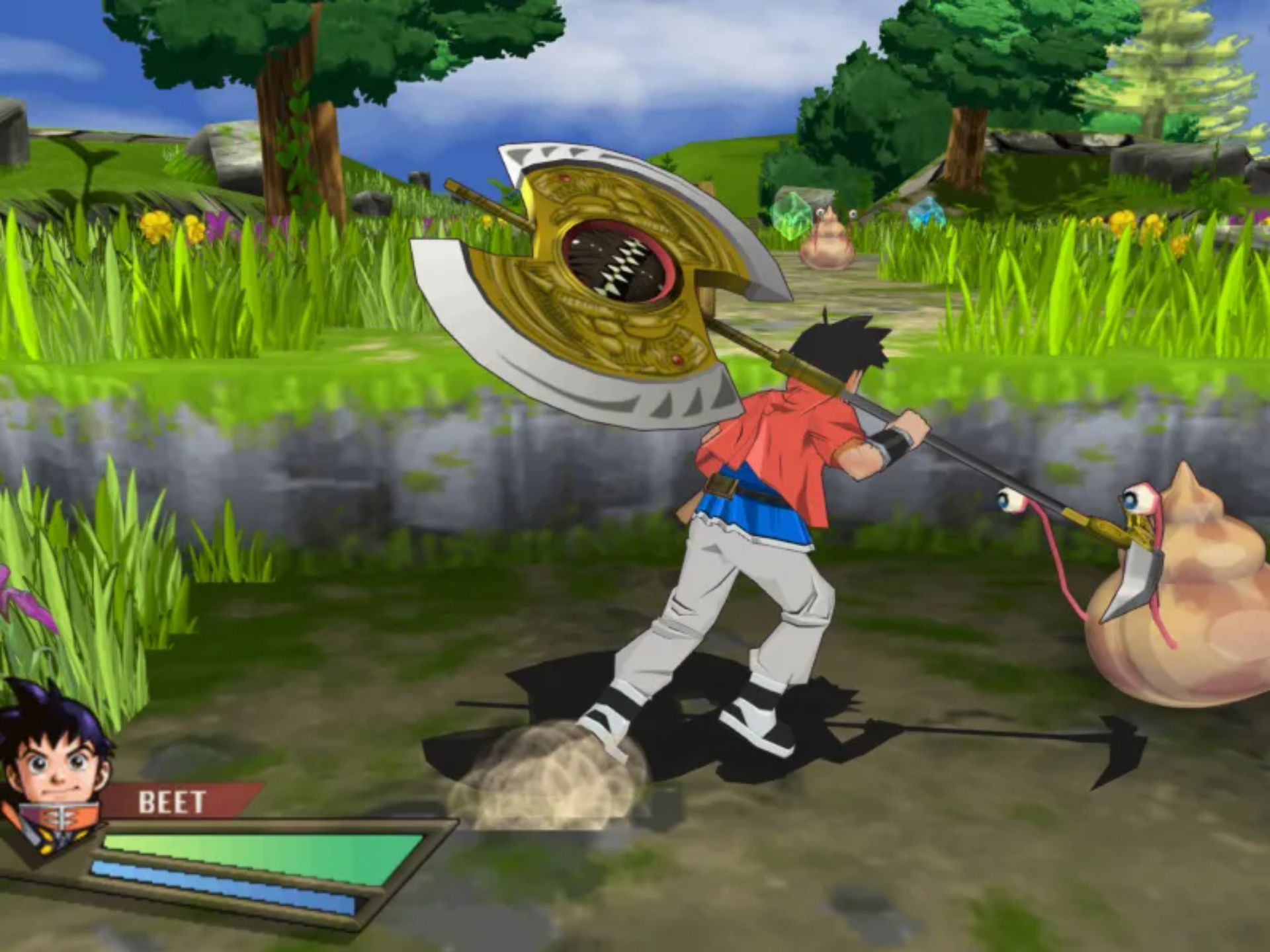少年冒险王 (Bouken-Ou Beet – Darkness Century) 是 Bandai 改编自同名漫画的动作 RPG 佳作,以“魔人肆虐的黑暗世纪”为舞台,讲述少年比特继承传说武器“才牙”,以“狩魔战士”之名平定乱世的热血冒险,完美还原原作的奇幻史诗感。