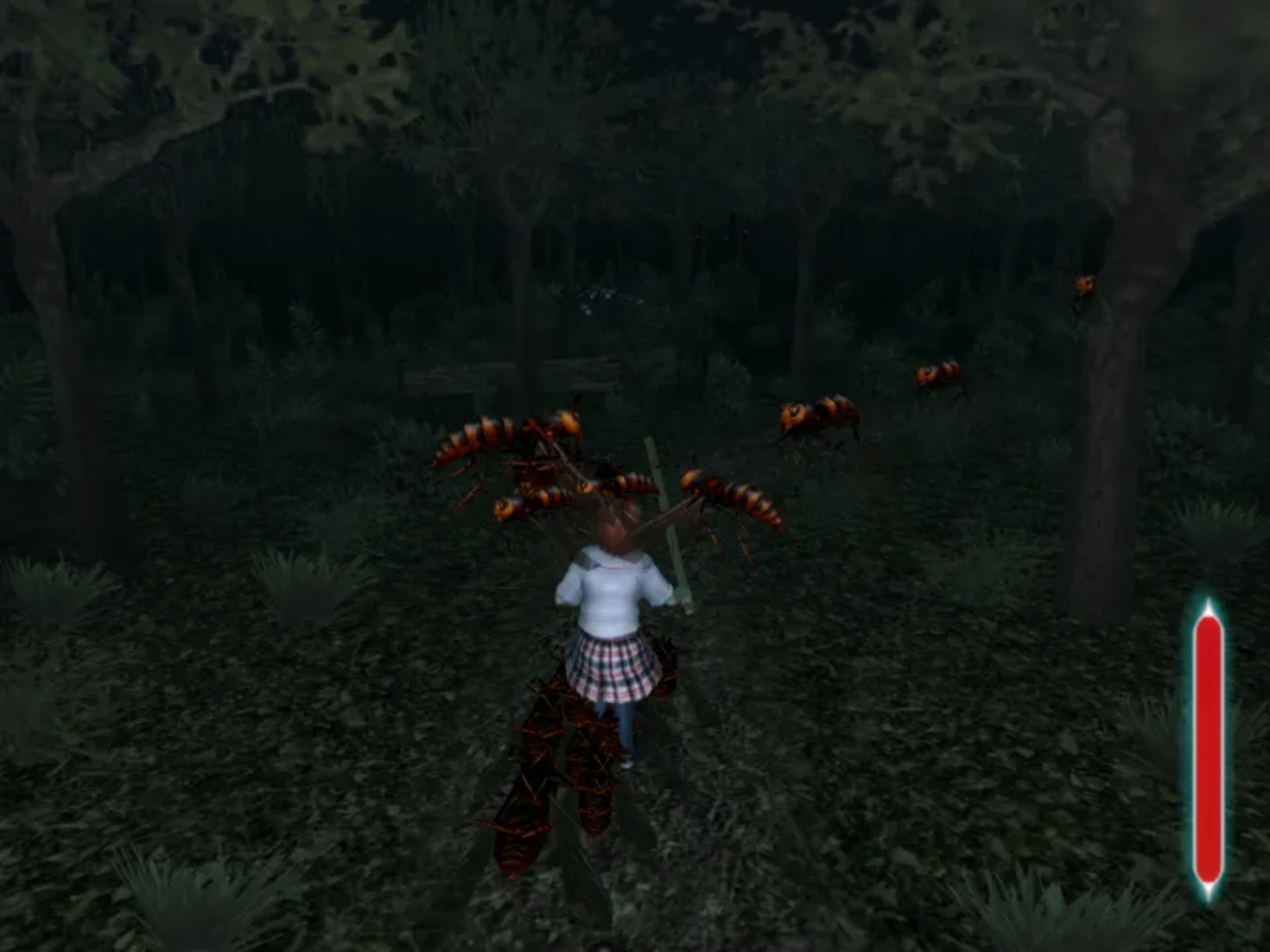 游戏剧情充满奇幻色彩:高中女生为追回被戴礼帽的诡异兔子偷走的手机,闯入被海量虫子侵占的放学后校园,从教室走廊到“迷宫地狱”等场景,每一步都深陷昆虫围堵的绝境。核心玩法聚焦生存与战斗,玩家需挥舞球棒、铁管等武器击退虫子,铁管等坚固武器可反复使用,击打威力更可观。独特的 BOSS 战策略极具创意,需击飞杂兵使其撞击 BOSS,或举起晕眩的敌人投掷攻击,充满反常规乐趣。