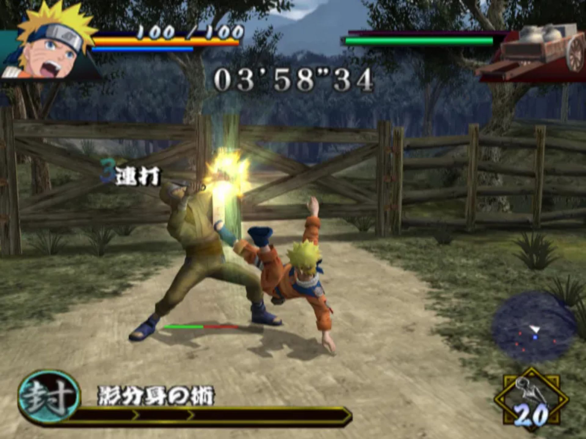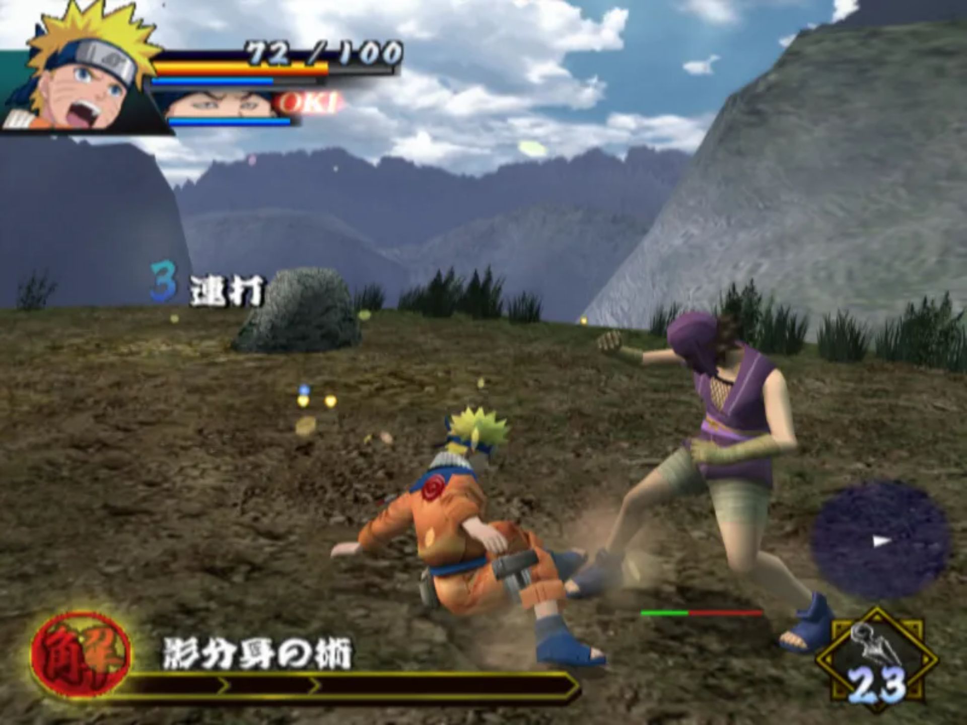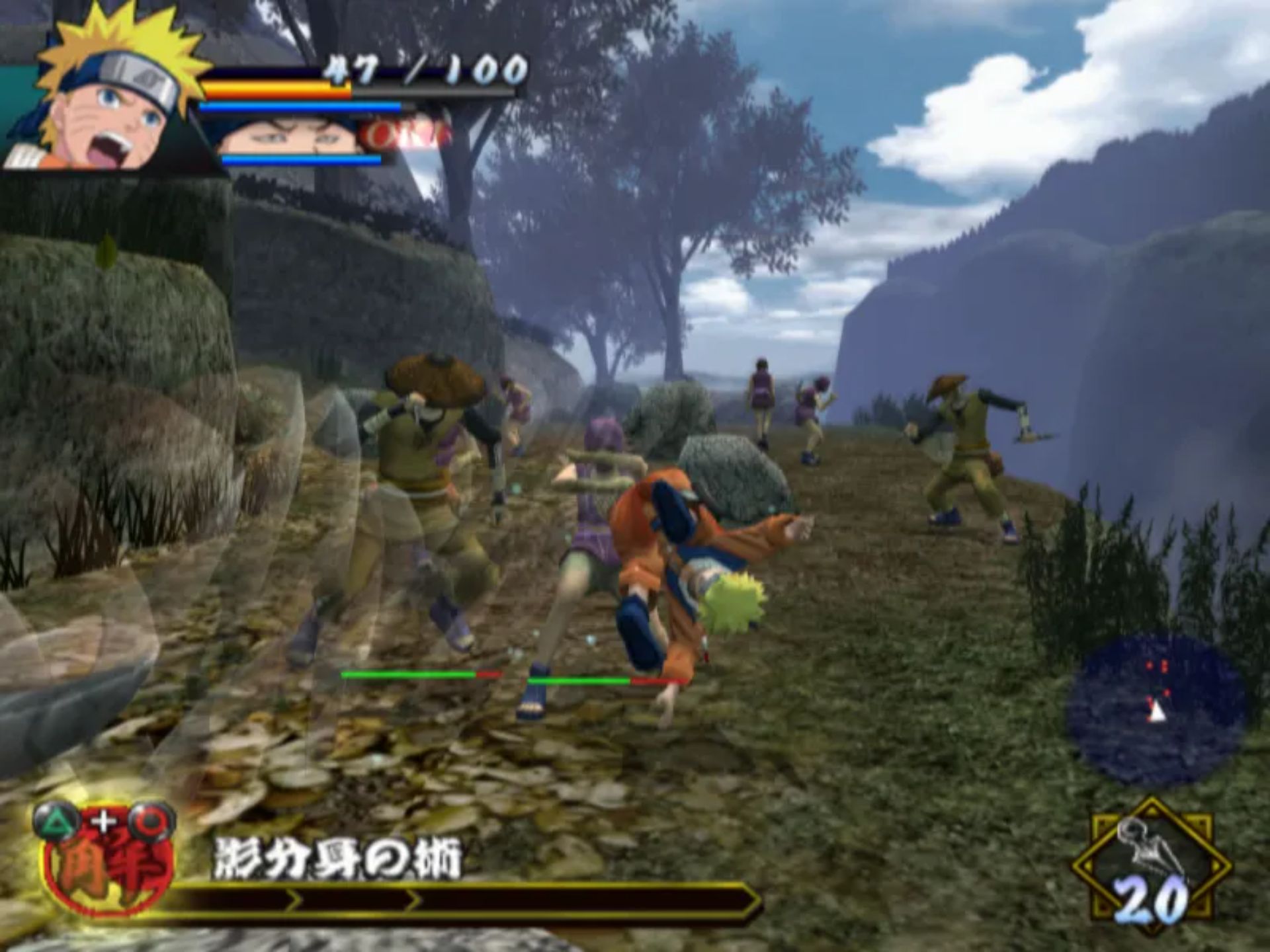 这款游戏与之前两款基于 PS2 的格斗游戏有所不同,因为玩家可以自由漫游并练习技能,然后再开始基于任务的故事线。你可以施展基本的近战连招和强力打击,还能使用查克拉施展诸如变身术和影分身术之类的忍术。当鸣人的生命值降到一定水平以下时,他还能变身为九尾鸣人。通过赢得战斗获得的“美德点数”,你可以提升生命值、耐力、查克拉等级或学习新技能。你还能获得像佐助、卡卡西和秋道这样的盟友来帮助你战斗。