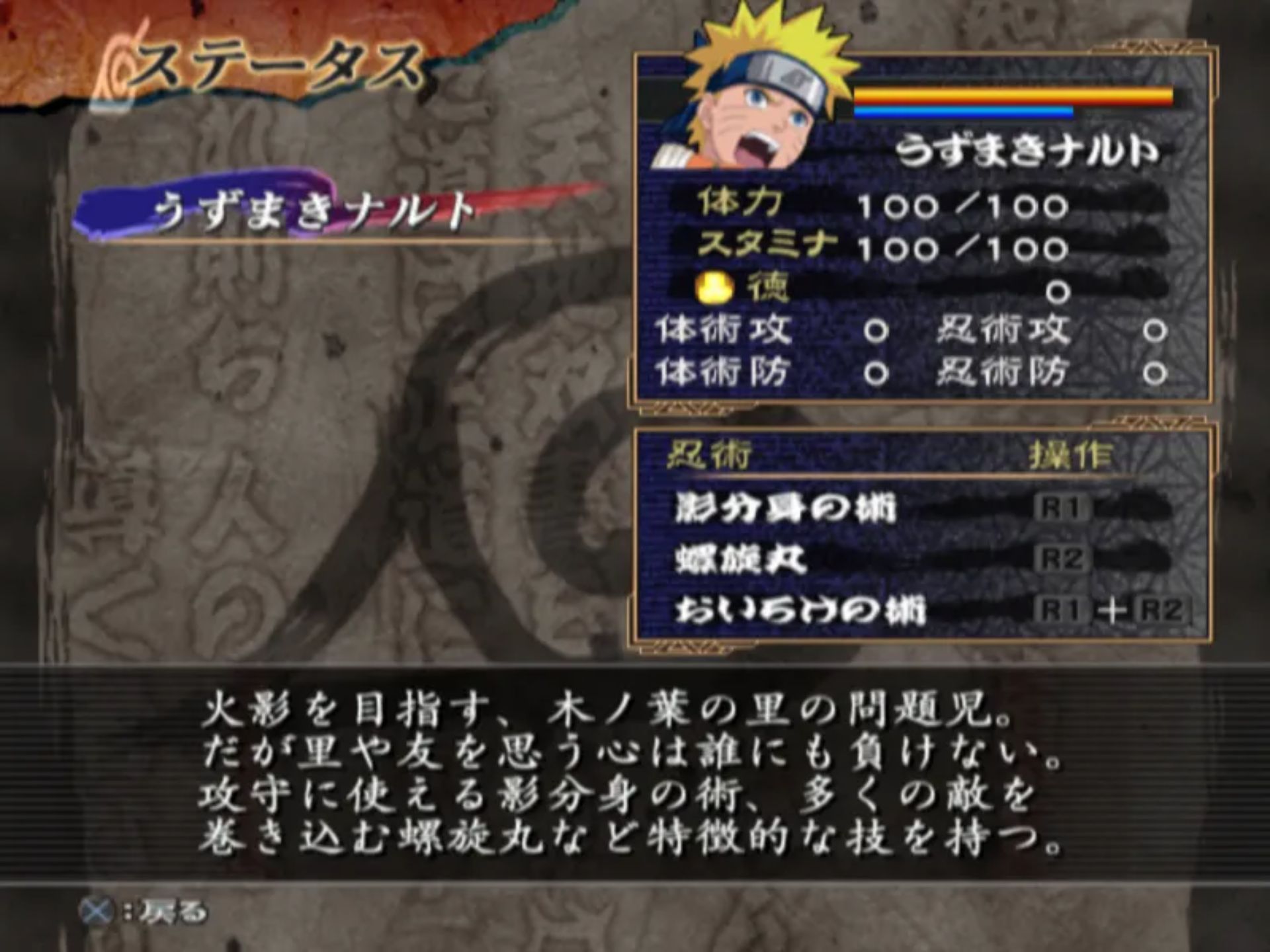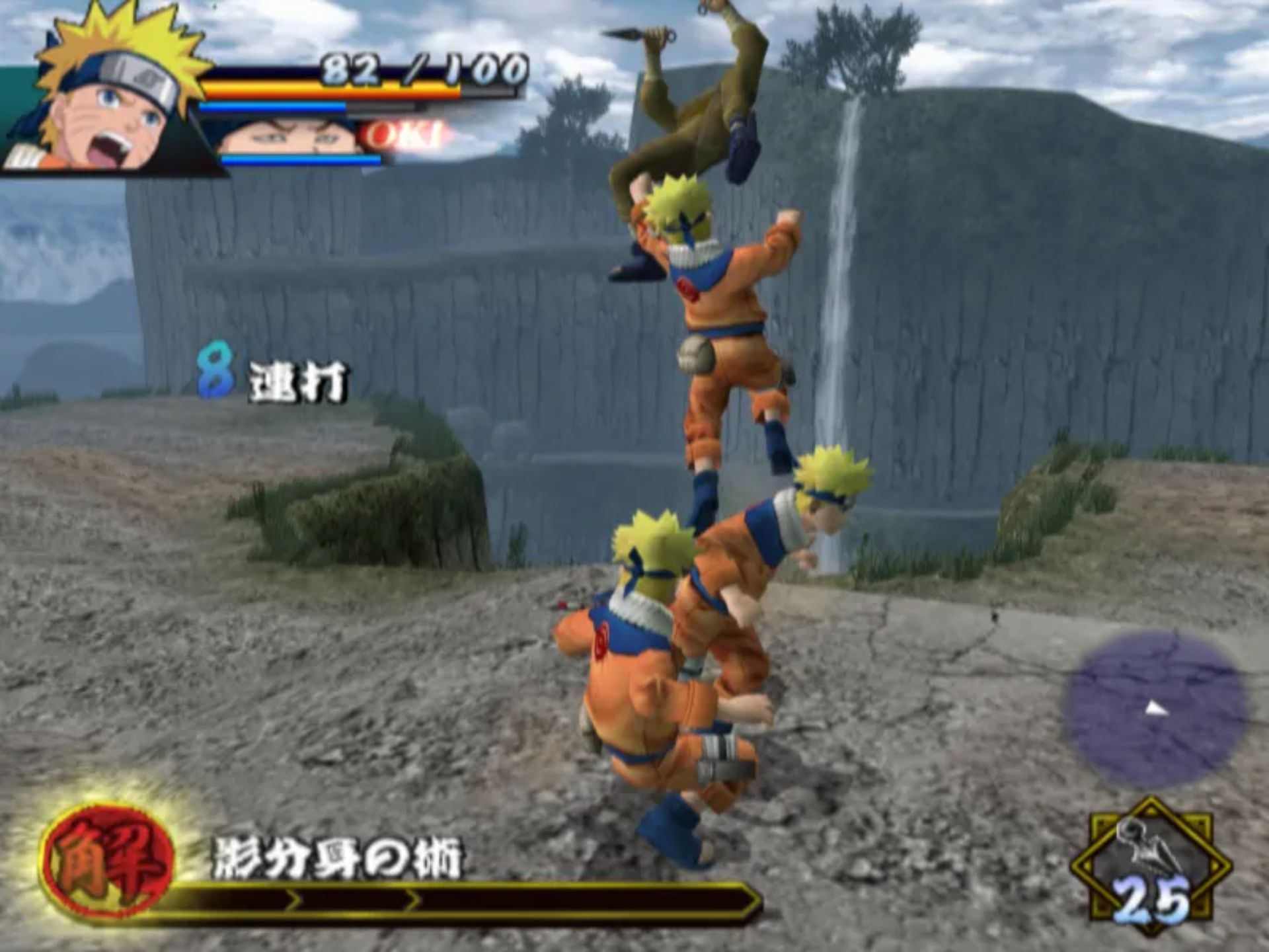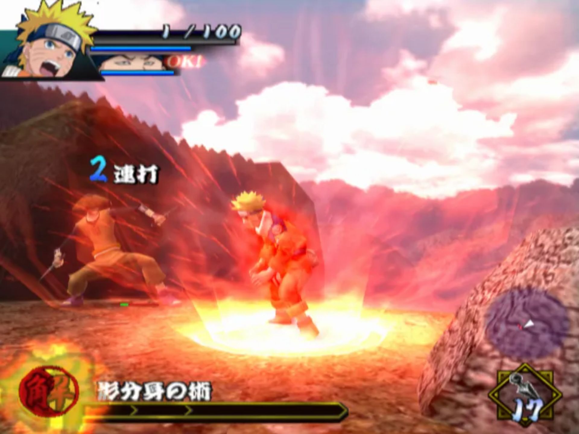 这款游戏与之前两款基于 PS2 的格斗游戏有所不同,因为玩家可以自由漫游并练习技能,然后再开始基于任务的故事线。你可以施展基本的近战连招和强力打击,还能使用查克拉施展诸如变身术和影分身术之类的忍术。当鸣人的生命值降到一定水平以下时,他还能变身为九尾鸣人。通过赢得战斗获得的“美德点数”,你可以提升生命值、耐力、查克拉等级或学习新技能。你还能获得像佐助、卡卡西和秋道这样的盟友来帮助你战斗。
