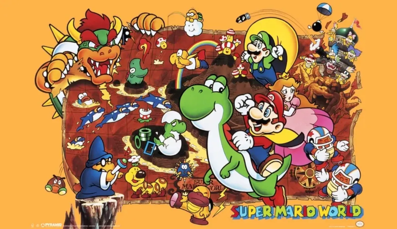超级马里奥世界 (Super Mario World) 一款SFC平台的动作冒险游戏。故事讲述马丽奥与公主和路易起去一个岛湖旅游。但公主不小心被恶龙捉走,于是马丽奥与路易展开冒险。《超级马里奥世界》秉承了马力欧的一贯风格,画面鲜活生动,操作简便,健康益智。游戏内暗藏秘密关卡。游戏中,酷霸王和他的党羽们控制了整个恐龙大陆,但幸运的是,马里奥和路易正打算找些龟壳踢踢。他们骑着耀西搜寻转换开关,神秘的小径喷出火球,用斗篷羽毛飞向天空,水管工手记里的每一样技能都将被用到。而他们的敌人也正在前方等着马力欧兄弟,有史以来最伟大最具挑战的冒险之一就要开场了!