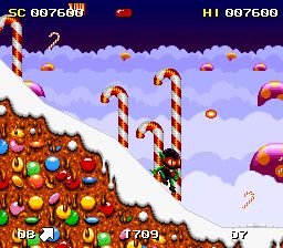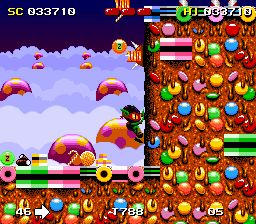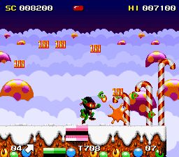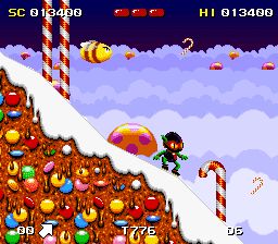 《珍宝小子历险记:真宝珠小子》(Zool) 日本游戏制造商Zool公司制作的一款不错的动作游戏,画面很独特,色彩很绚烂!主角看起来也很滑稽。不管怎么说最主要的是在游戏中是否能获得乐趣,我相信这部作品能达到这个效果!